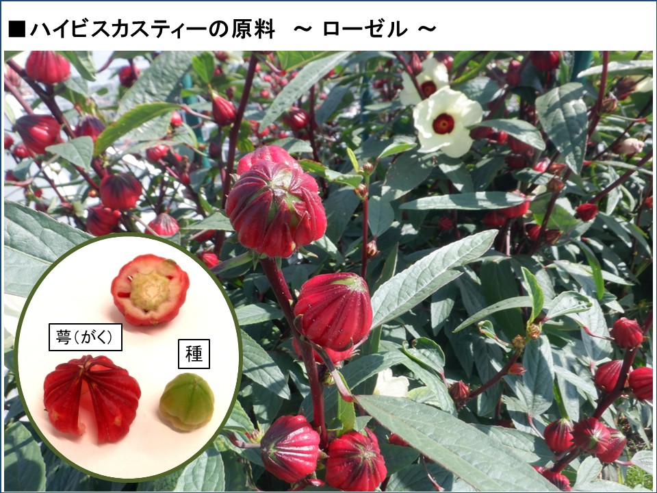そんな猛暑で大変だった中、唯一元気だったのが「ローゼル」です。 あまり聞きなじみがないかもしれませんが「ハイビスカスティー」の原料になる植物です。 「ハイビスカスティー」は「ハイビスカスの花」から作るわけではないと知って驚く方もいらっしゃるかもしれません。(実は自分も、猛暑に強い植物を調べていて「ハイビスカスティー」の原料になる「ローゼル」を、今年になって初めて知りました。) 「ローゼル」は、クリーム色の「アオイ」に似た花が咲き、花が咲き終わった後に赤い実ができます。 「ハイビスカスティー」には、この実の「萼(ガク)」の部分を使います。 「萼(ガク)」にお湯を注いで2~3分で、鮮やかな赤い「ハイビスカスティー」ができあがります。 酸味があるのでハチミツを少し入れても美味しいですよ。 スーパーで観賞用として枝ごと売っていることもあるようなので、見かけたらチャレンジしてみてはいかがでしょうか。