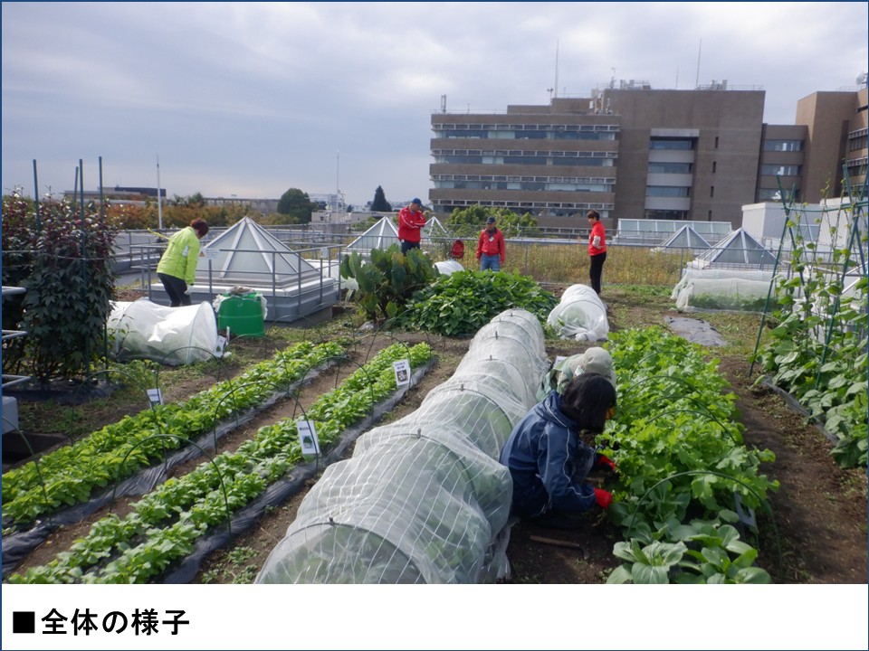 今年の夏は、猛暑による熱中症対策のために7月、8月の屋上菜園作業を中止しました。 そのため、例年収穫体験会の目玉であった「サツマイモ」の収穫量は、かなり少なめとなりました。 そのかわり、9月に屋上菜園作業を再開してから、生育の早いものをと植えた「ラディッシュ」や「ルッコラ」は、すくすく育ち、フサフサになってくれました。 また、大根類もしっかりした太さのものが収穫できました。 収穫体験会に参加してくれた方々には、収穫体験の前に「今夏は猛暑や少雨での影響で、野菜類の生育が難しく、例年の収穫体験会より、野菜類の収穫量が少ないこと」をご説明しましたが、なんとか参加者全員に行き渡るくらいの量の野菜類が収穫できてホッとしました。(昨今の異常気象の中、お野菜などを栽培する農家さんたちのご苦労は相当なものだなと、あらためて思いました。)